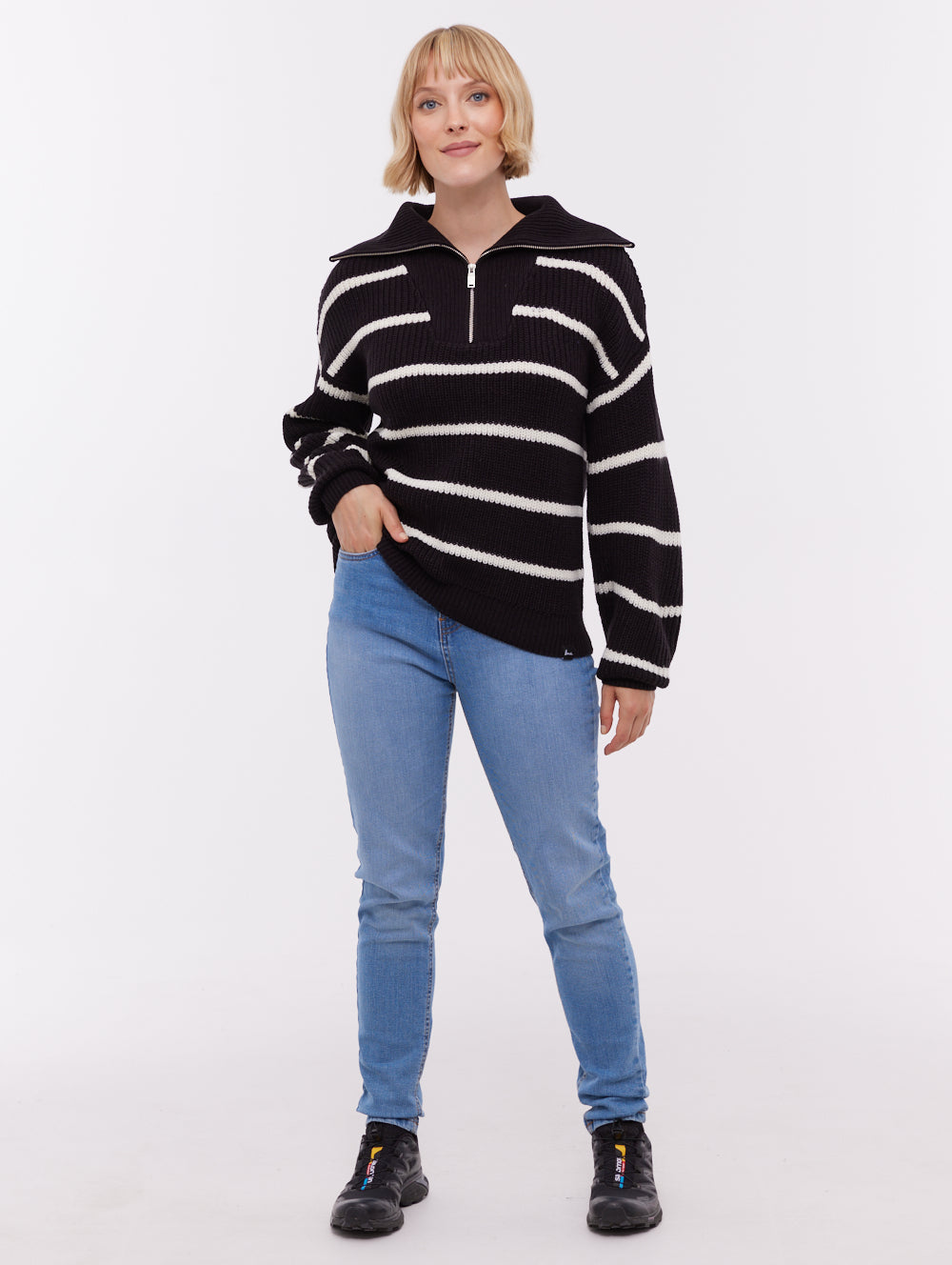 Thurynn Oversize Zippered Funnel Sweater - Black