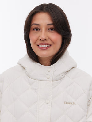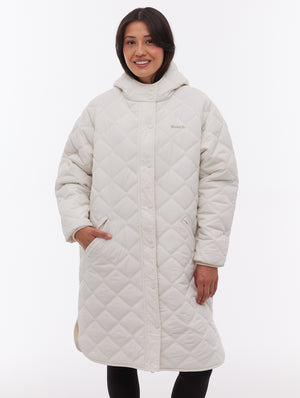 The Gemna Quilted Parka by Bench offers warmth and elegance in a minimalist silhouette. With its soft diamond quilt pattern, full-length coverage, and oversized fit, it's perfect for layering during cold months. A snap button closure, insulated construction, and cozy hood ensure comfort and protection without compromising style.