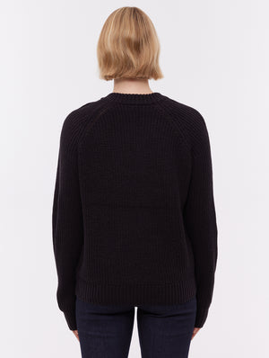 Introducing the Georgiana Raglan Crew Neck Sweater by Bench, a perfect blend of modern fashion and comfort. This cozy pullover features a stylish knit texture, ribbed cuffs, and a waistband for added warmth. Ideal for workdays or outings, it effortlessly transitions from casual to formal occasions, showcasing timeless style.