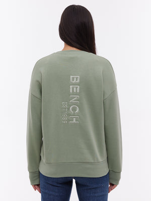 Minimalist at the front, statement at the back. The Joda Vertical Logo Crew Neck by Bench features a clean front with a subtle embroidered logo and a bold vertical back logo design. Made from soft fleece fabric, this sweatshirt combines comfort and style for an effortless everyday look.