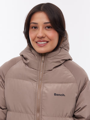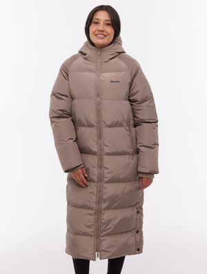 Introducing the Ryelle Hooded Maxi Puffer Coat from Bench. Designed to brave the chill in utmost comfort, this coat boasts a hood with a sleek funnel neck, offering a modern twist to classic warmth. The two-way full length zipper closure not only ensures easy wear but also adds a contemporary touch to its aesthetic. Crafted with practicality in mind, the coat features zippered side pockets adorned with distinctive branded pulls, seamlessly merging convenience with brand identity. Embracing both style and innovation, ribbed cuffs with thumbholes provide an extra layer of protection against the cold while allowing effortless movement. Furthermore, the snap side-vents serve as a testament to the coat's adaptability, enabling freedom of movement and temperature regulation. The Ryelle Hooded Maxi Puffer Coat embodies Bench's commitment to combining fashion with function for the modern individual seeking versatile outerwear.