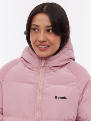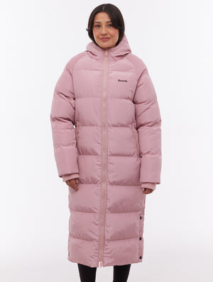 Introducing the Ryelle Hooded Maxi Puffer Coat from Bench. Designed to brave the chill in utmost comfort, this coat boasts a hood with a sleek funnel neck, offering a modern twist to classic warmth. The two-way full length zipper closure not only ensures easy wear but also adds a contemporary touch to its aesthetic. Crafted with practicality in mind, the coat features zippered side pockets adorned with distinctive branded pulls, seamlessly merging convenience with brand identity. Embracing both style and innovation, ribbed cuffs with thumbholes provide an extra layer of protection against the cold while allowing effortless movement. Furthermore, the snap side-vents serve as a testament to the coat's adaptability, enabling freedom of movement and temperature regulation. The Ryelle Hooded Maxi Puffer Coat embodies Bench's commitment to combining fashion with function for the modern individual seeking versatile outerwear.